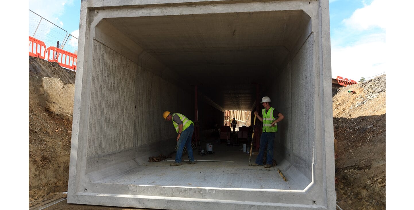 Products Supplied: 20 3.2m high Box Culvert Units with Cast-In Textured liner