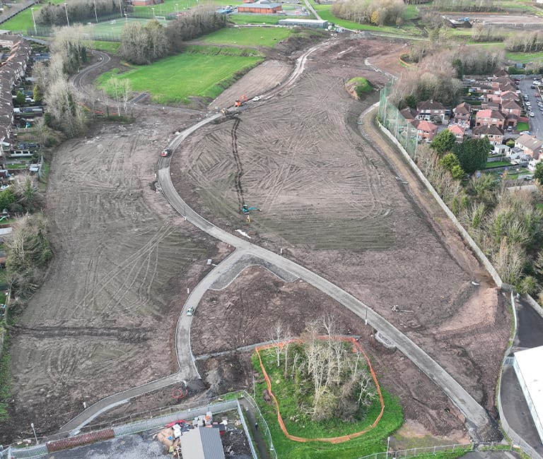 Works commenced in July 2025, with initial site clearance and bulk earthworks to phase one. Majority of works to phase 1 nearing completion with the exception of final surfacing, street furniture, and landscaping.