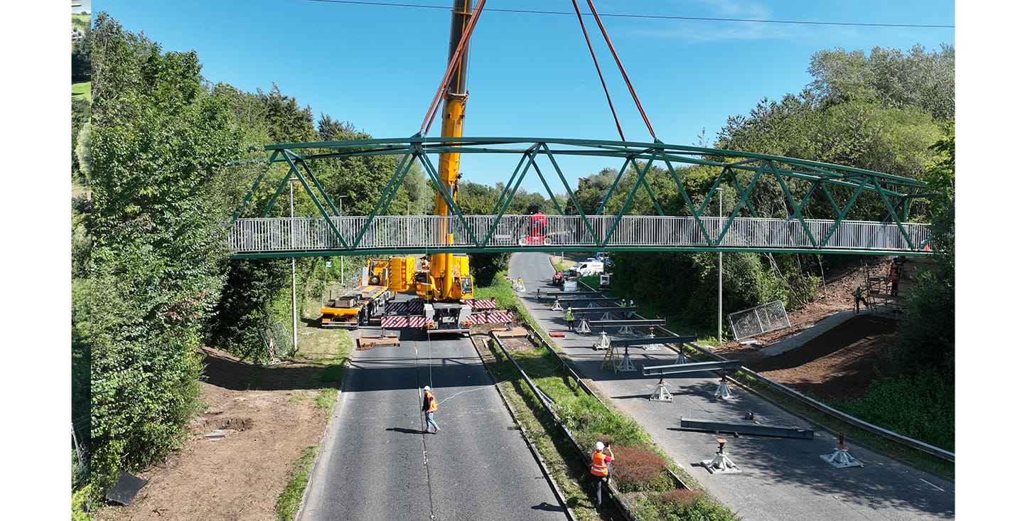 They were aided onsite by Quigley Crane Hire who set the footbridge into position. Traffic management was in place to ensure safety of operations.
