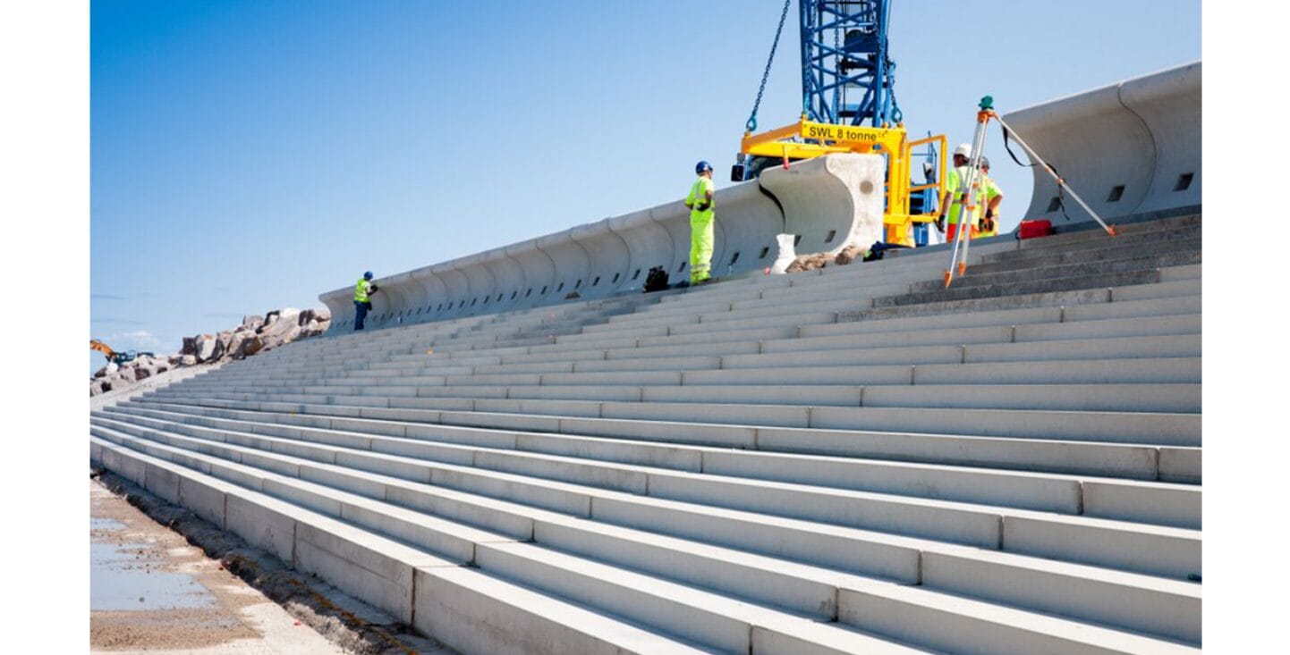 Products Supplied: Precast Concrete Stepped Revetment Units; Wave Walls; Rear Flood Walls and Beach Access Steps